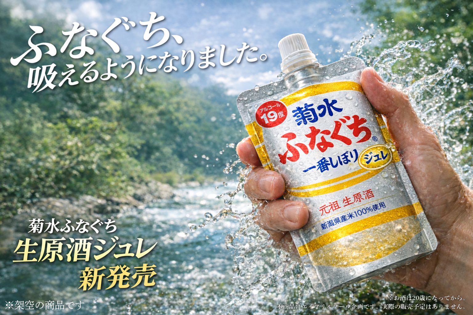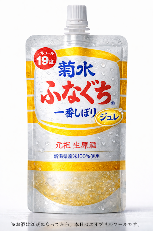 手軽に、生原酒チャージ「菊水ふなぐち 生原酒ジュレ」新発売 【エイプリルフール】
