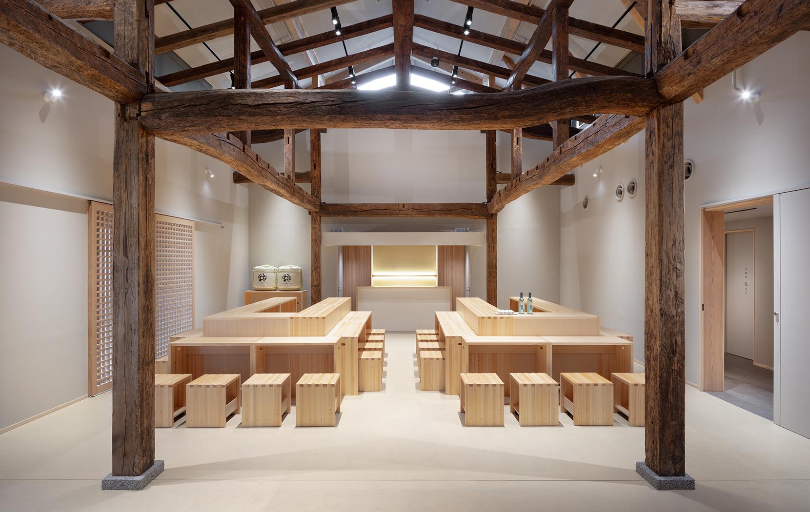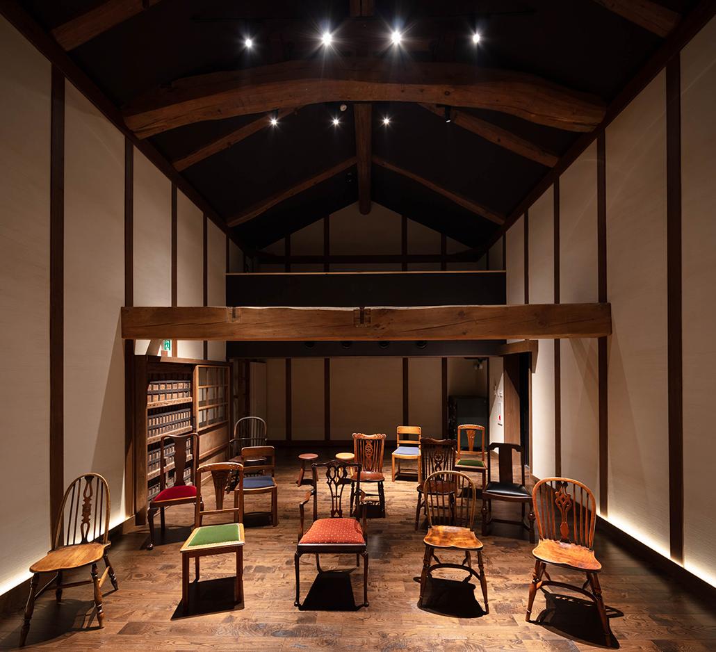 菊水酒造創業家が使っていた蔵を改築したイベント空間。扉をあけると、上にひらけた空間が広がります。演奏や展示イベントなどを間近でたのしむ場所に。