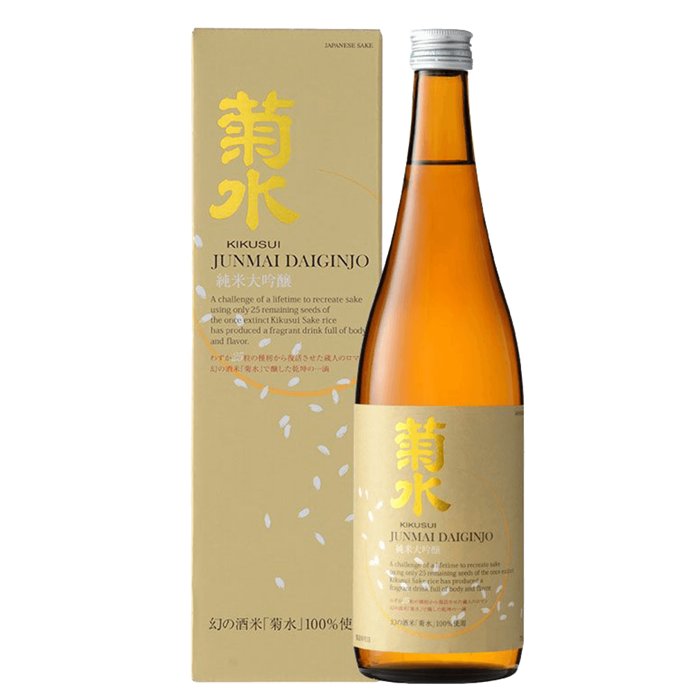 幻の酒米「菊水」とは、1937年に愛知県で誕生し、酒の原料米として大変優れた性質を持ちながら、戦中の食糧難により姿を消した品種です。その後、新潟の専門農家グループ「(有)共生の大地にいがた21」の手により、1997年にわずか25粒の種籾から復活に成功した幻の酒米です。この幻の酒米を100%使用し、豊かな旨みと芳醇な香りを持つ純米大吟醸酒をつくりあげました。あますことなく引き出された米の味わいをお楽しみください。