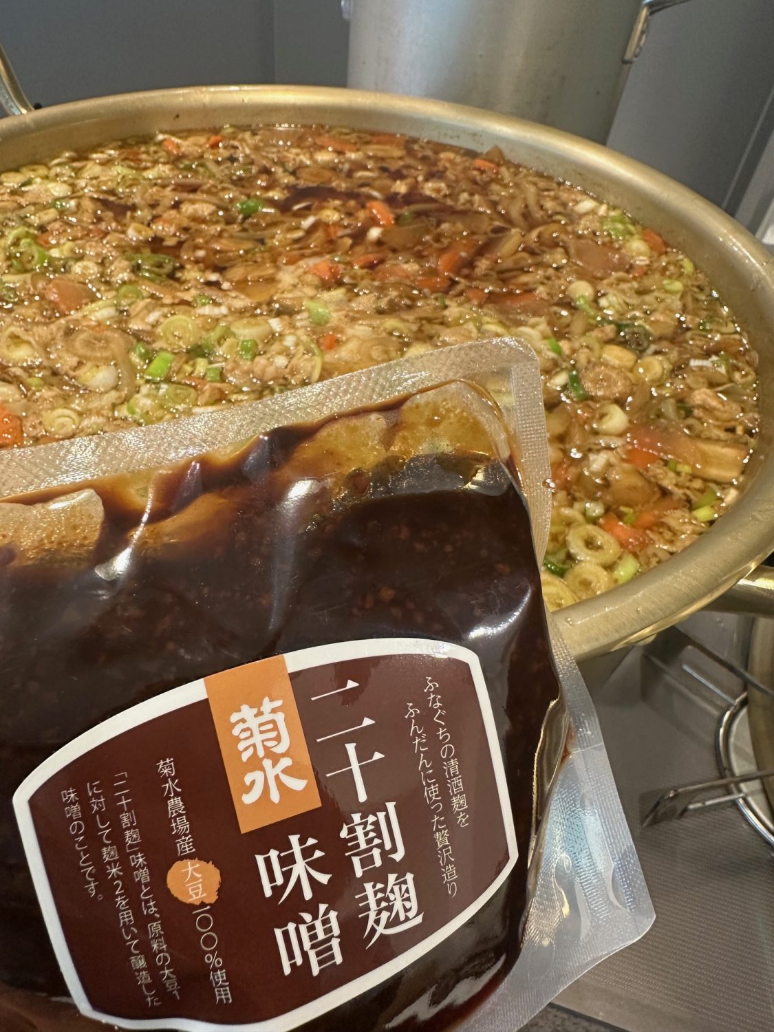 豚汁には、ふなぐちの清酒麹をふんだんに使った「菊水の二十割麹 味噌」を使用。